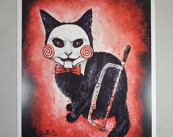Jig Paw Fine Art Watercolour Horror Black Cat Print Etsy Canada